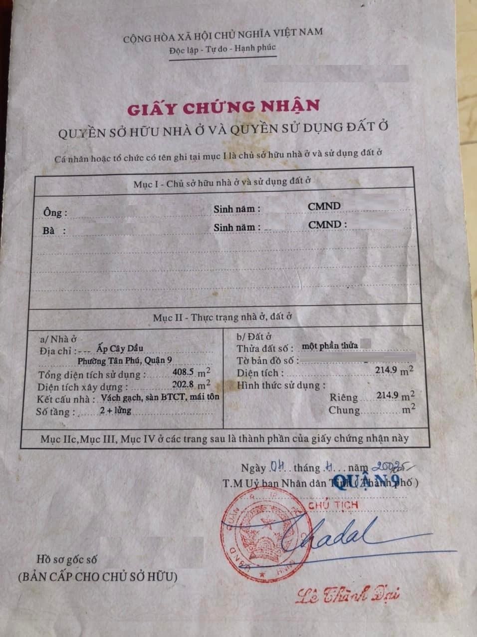 Địa chỉ tài sản: Đường Hoàng Hữu Nam, Phường Tân Phú. , Phường Tân Phú, Quận 9, Hồ Chí Minh