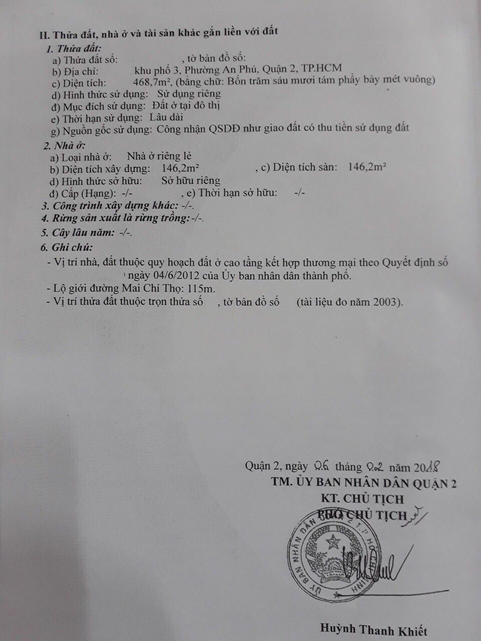 Địa chỉ tài sản: đường Mai Chí Thọ, phường An Phú, Q2. , Phường An Phú, Quận 2, Hồ Chí Minh