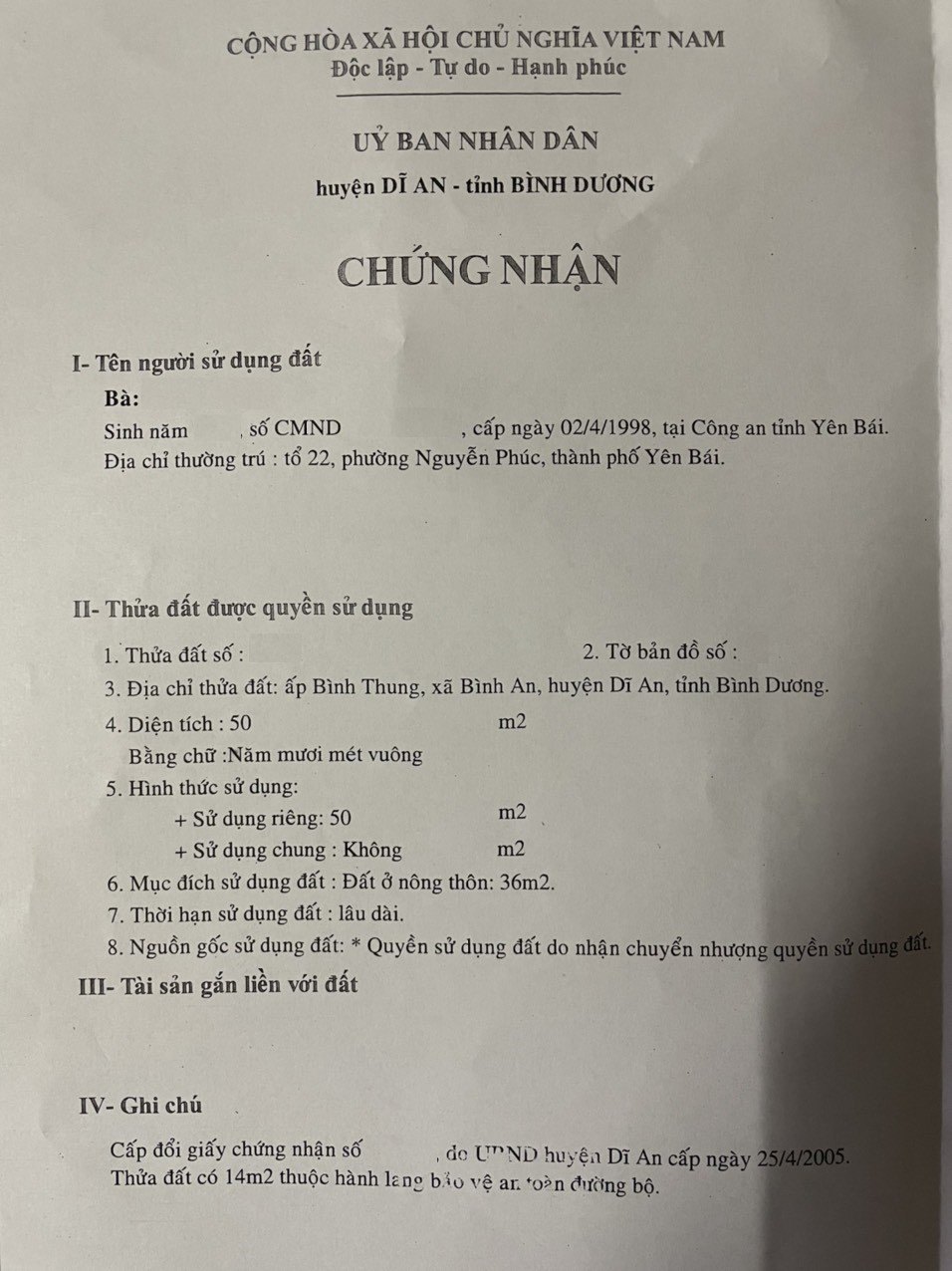 Địa chỉ tài sản: đường Mỹ Phước Tân Vạn, Phường Bình An, Dĩ An, Phường Bình An, Thị xã Dĩ An, Bình Dương