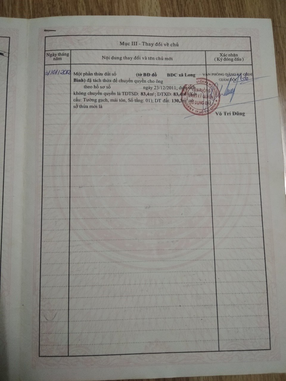 Diện Tích đất công nhận: 130.3 m²