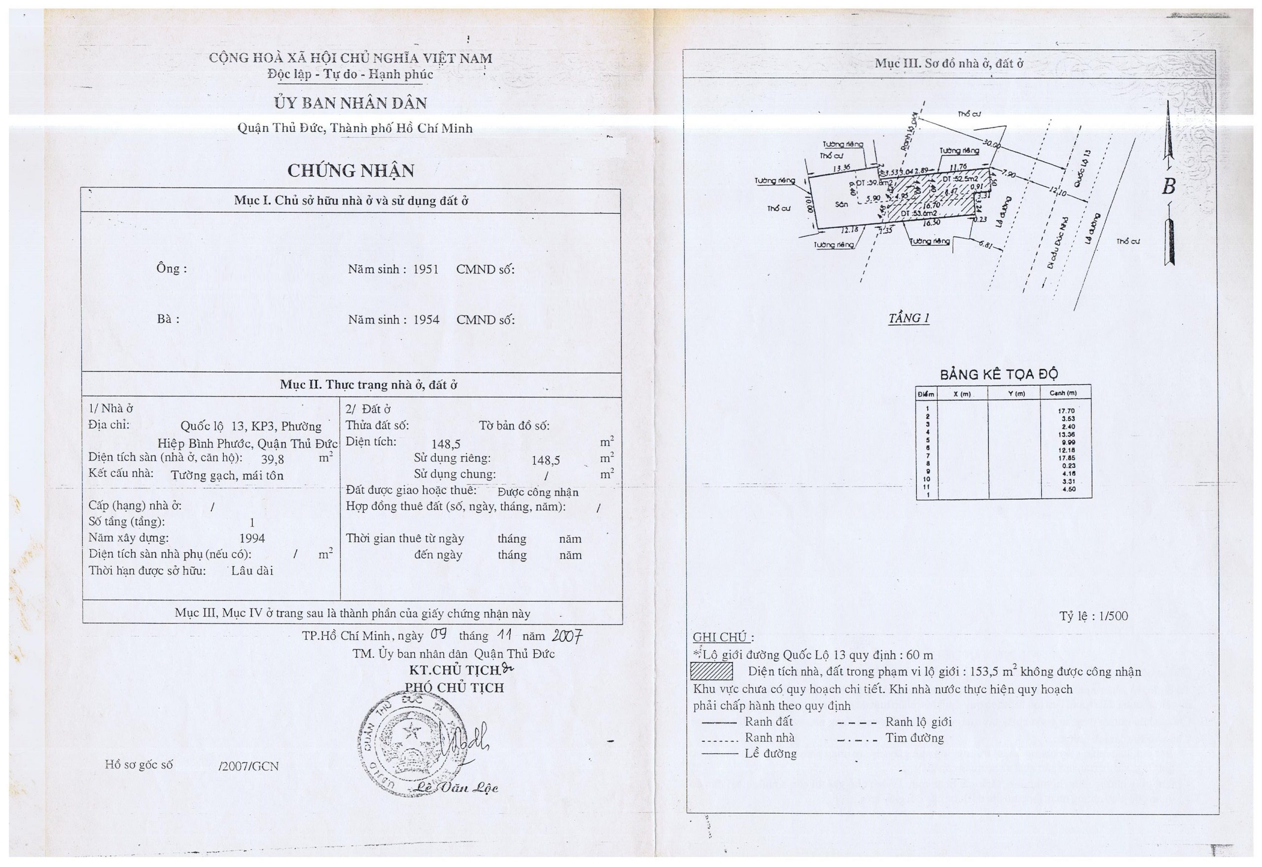 + DT đất thuộc lô giới không công nhận: 153.5 m2