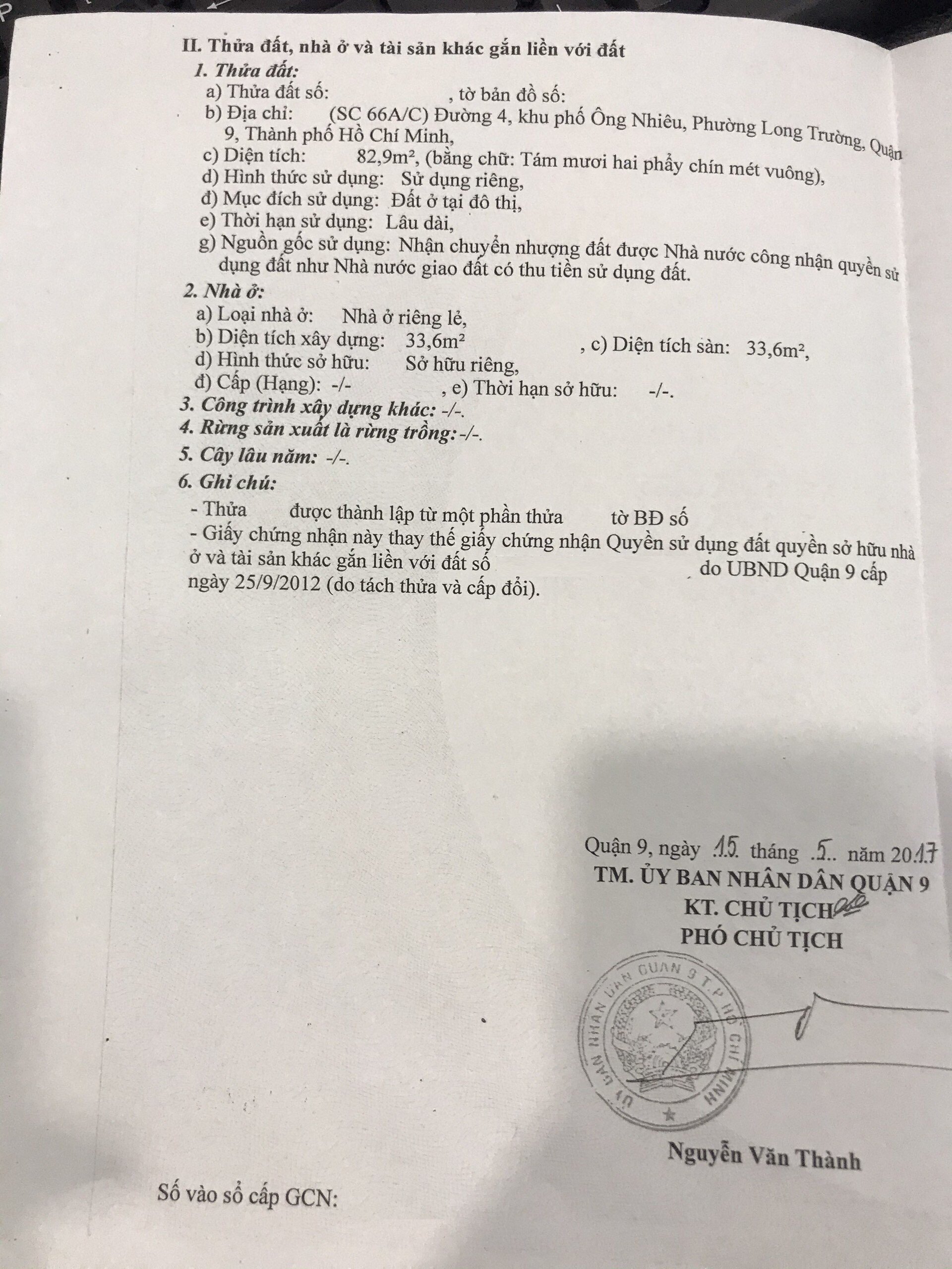Địa chỉ tài sản: đường số 4, Phường Long Trường, Phường Long Trường, Quận 9, Hồ Chí Minh