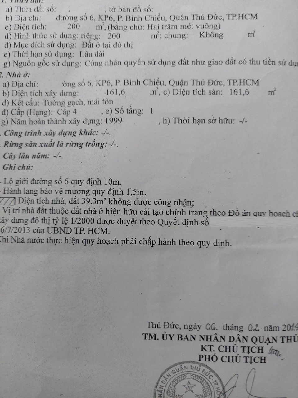 Địa chỉ tài sản: Đường số 6, Phường Bình Chiểu, Phường Bình Chiểu, Quận Thủ Đức, Hồ Chí Minh