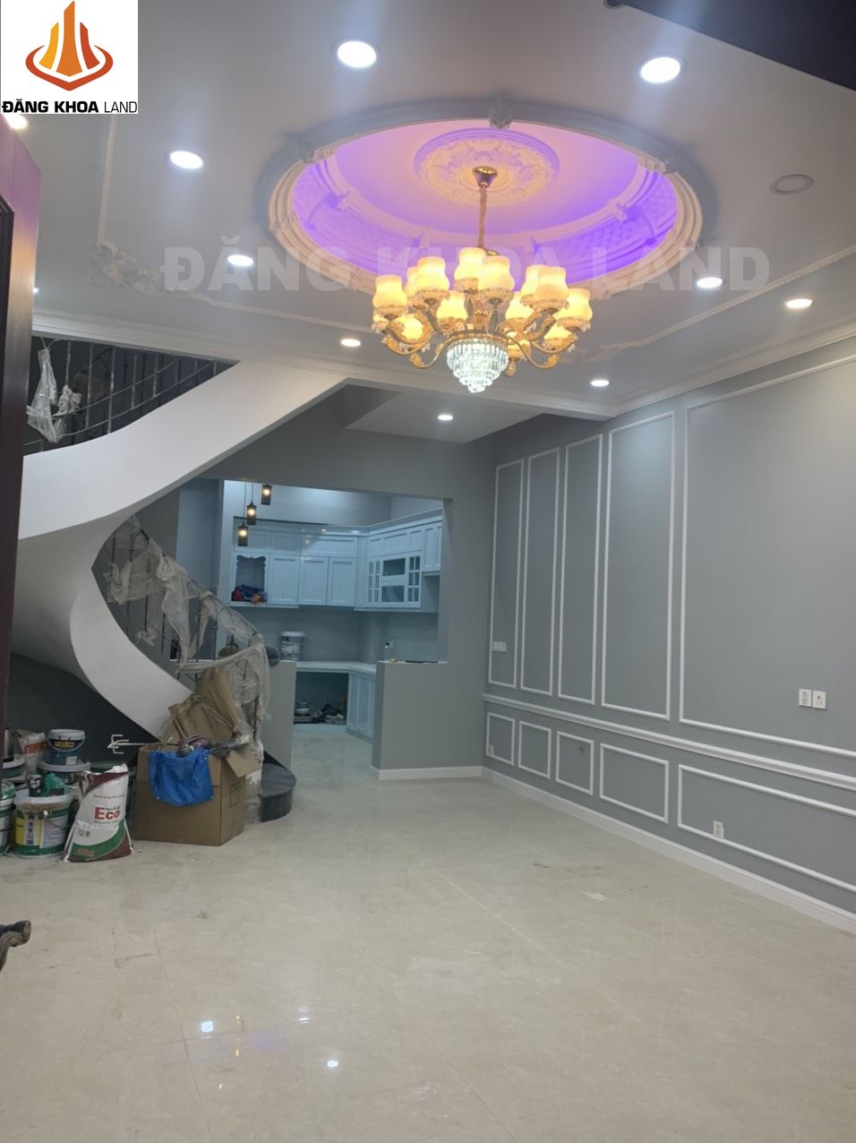 Nhà xây theo kiểu tân cổ điển, nhà được xây dựng và hoàn thiện bằng nội thất cao cấp và thiết kế theo chuẩn phong thuỷ Tây tứ trạch.