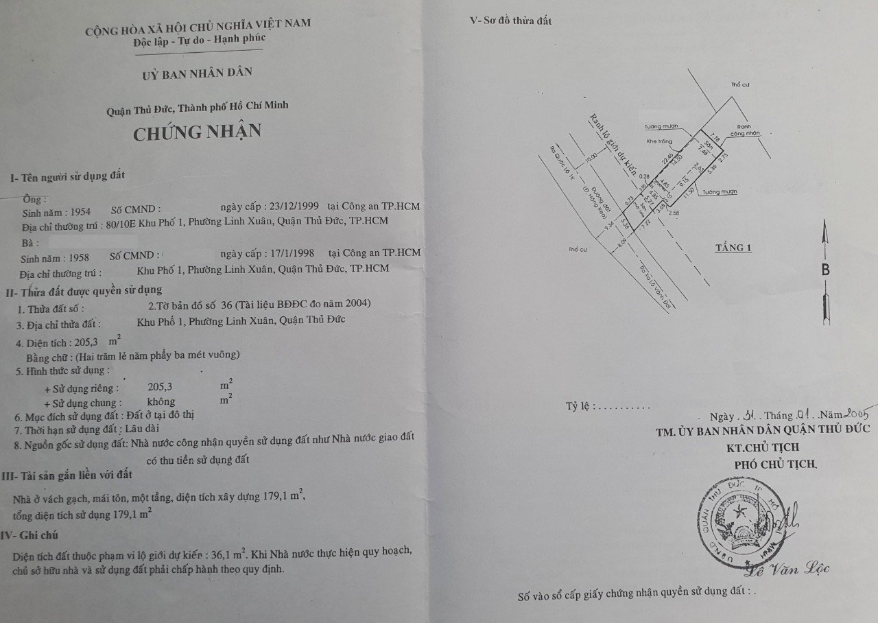 *Diện Tích đất công nhận: 205.3 m2 ngang 5.3m hậu 7.7 m x dài 32 m