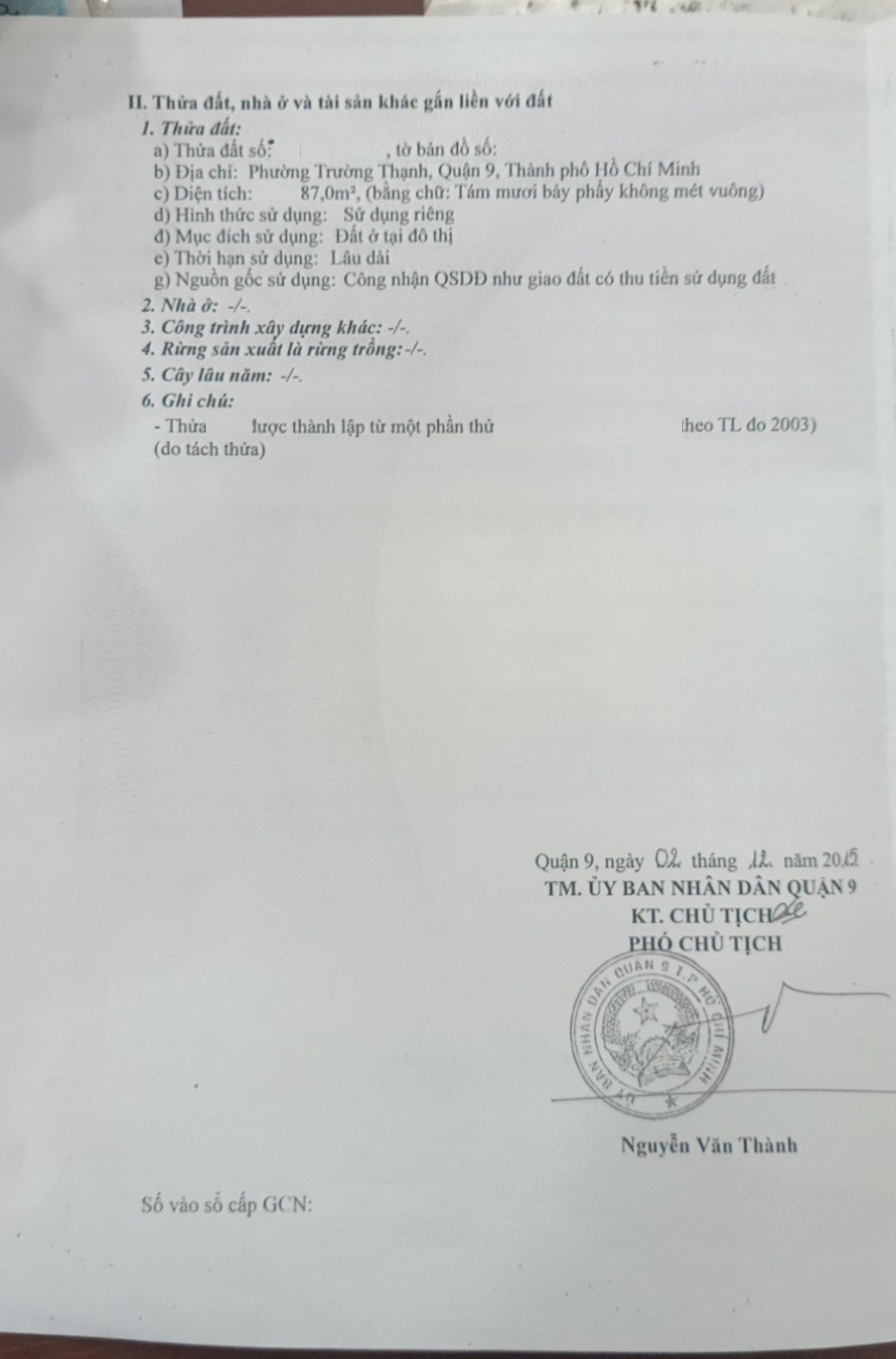Địa chỉ tài sản: Đường số 8, Phường Trường Thạnh, Phường Trường Thạnh, Quận 9, Hồ Chí Minh