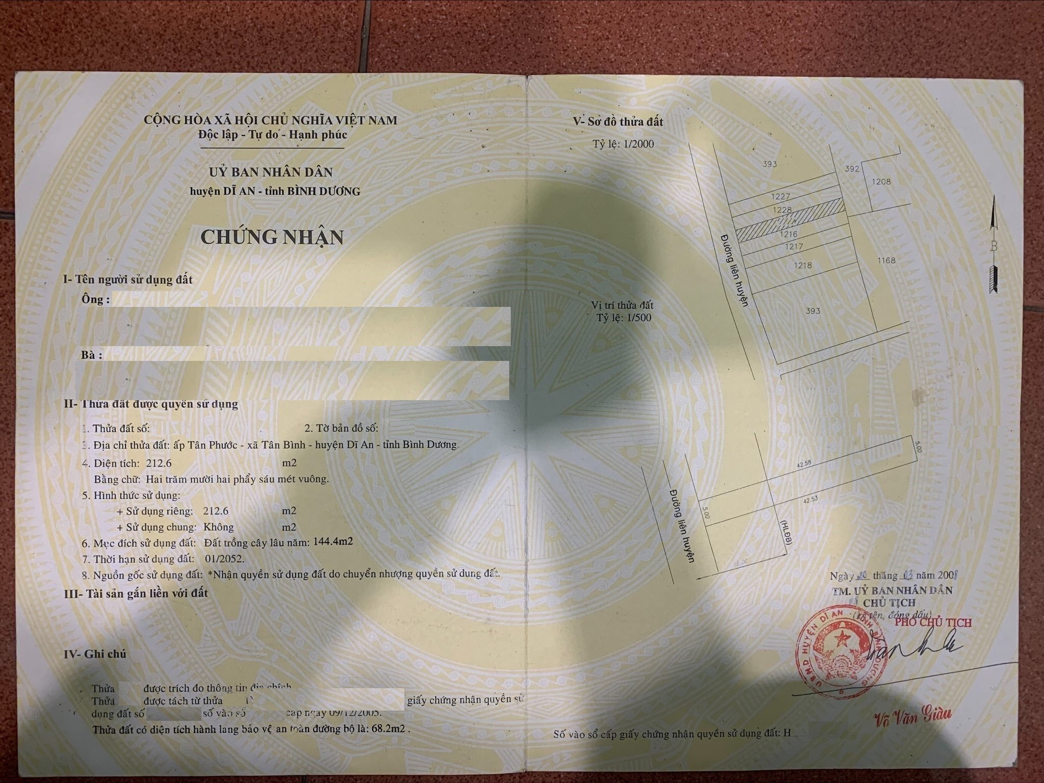 *Diện Tích đất công nhận: 212.6m2 (ngang 5m x dài 42.5m)
