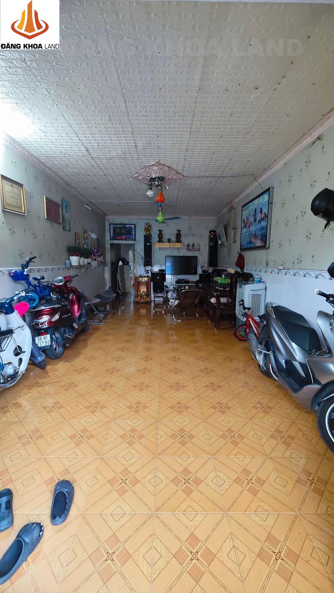 <1041PB>: Bán nhà MT nội khu, Đường 12, Phường Phước Bình, Vỉa hè 3m7, đường nhựa 6m7. Oto ngủ trong nhà vì phòng khách rộng (8×4). Nhà 1 trệt (21.6 x 4), 1 gác đúc (5.8 x 4).