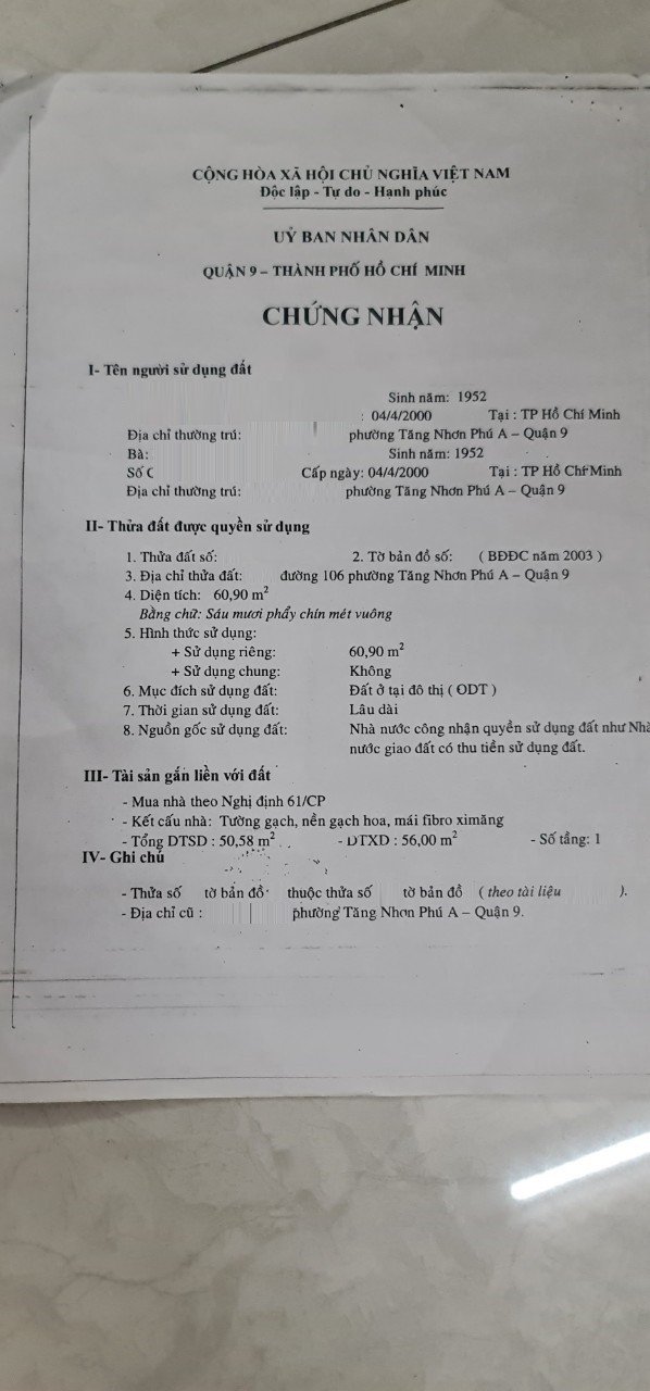 Địa chỉ tài sản: đường 106, Phường Tăng Nhơn Phú A, Phường Tăng Nhơn Phú A, Quận 9, Hồ Chí Minh