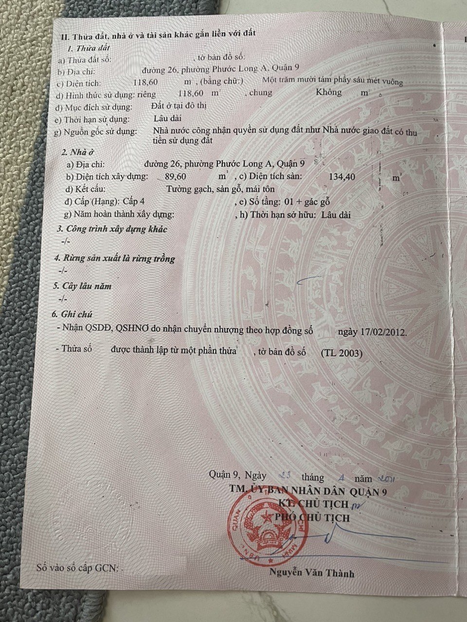 Địa chỉ tài sản: đường số 26, Phường Phước Long A, Phường Phước Long A, Quận 9, Hồ Chí Minh
