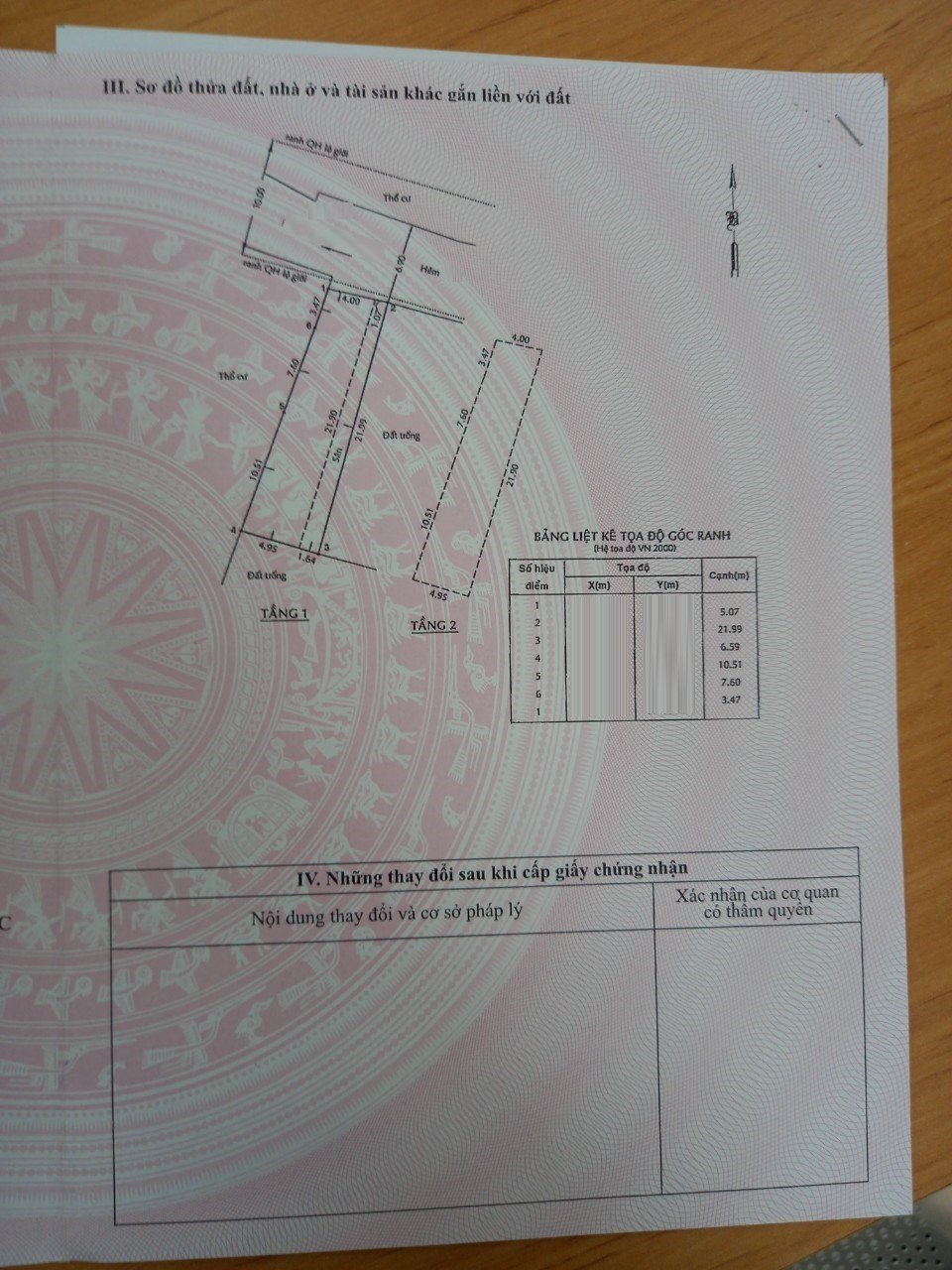 *Diện tích đất công nhận: 126.4 m2, ngang 5.07m (nở hậu 6.6m) x dài 21.99m.