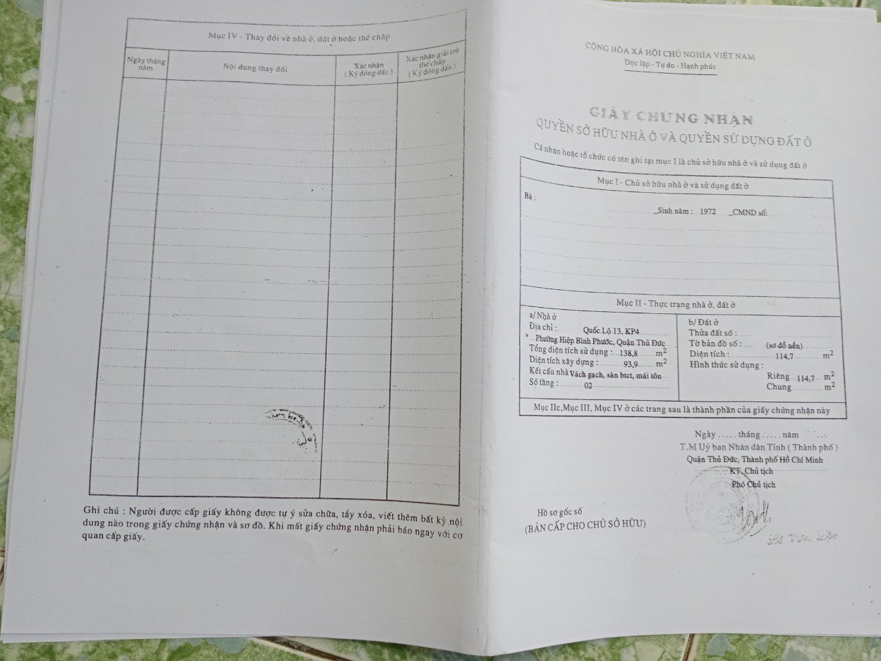 Địa chỉ tài sản: Quốc Lộ 13 phường Hiệp Bình Phước, Phường Hiệp Bình Phước, Quận Thủ Đức, Hồ Chí Minh