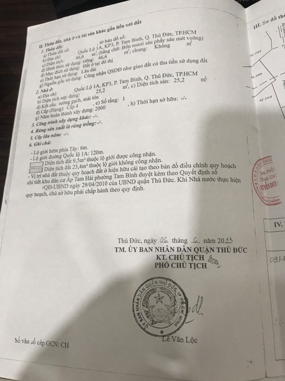 Địa chỉ tài sản: Quốc lộ 1A, phường Tam Bình, Phường Tam Bình, Quận Thủ Đức, Hồ Chí Minh