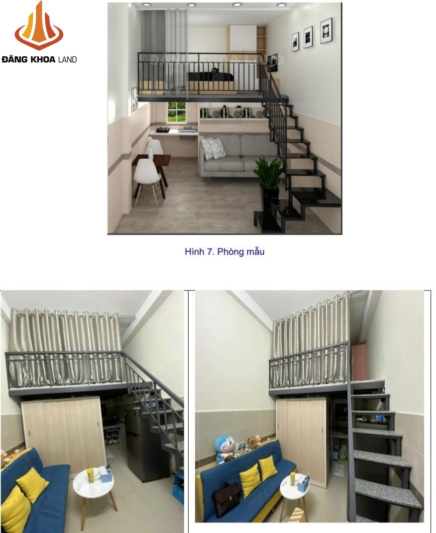 −Mỗi tầng lầu 8 phòng với diện tích mỗi phòng là: bên dưới: 15-20m2 + Gác lửng: 9-12 m2