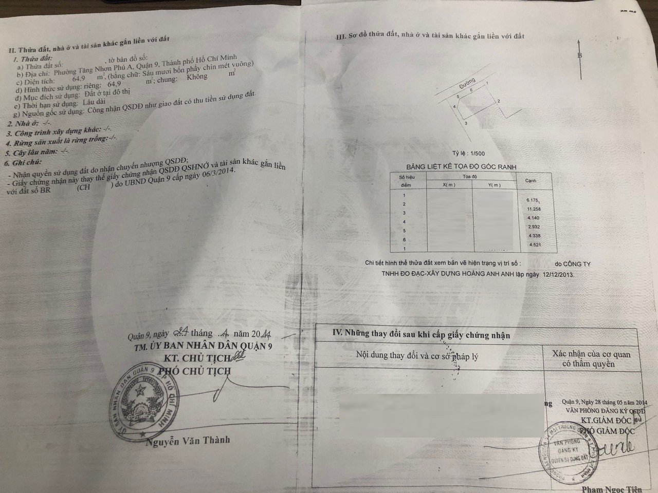 *Diện tích đất công nhận: 64.9m2. Ngang 11.25m x Dài 6.175m.
