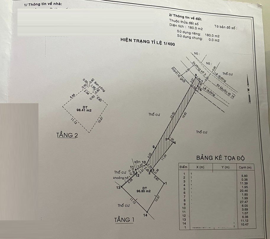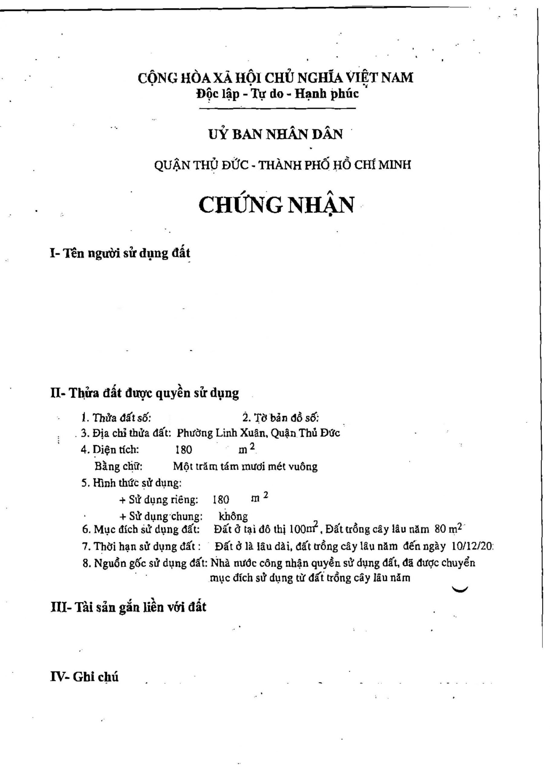 *Diện Tích đất công nhận: 180 m2 ngang 2 m x dài 44 m nở hậu 10.47m ODT: 100 m2 CLN: 80 m2