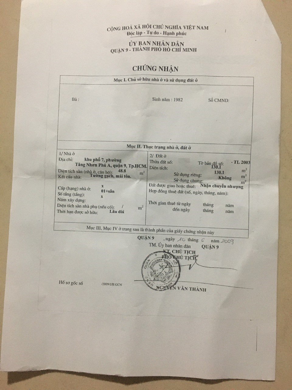 Địa chỉ tài sản: đường 102 phường Tăng Nhơn Phú A, Phường Tăng Nhơn Phú A, Quận 9, Hồ Chí Minh