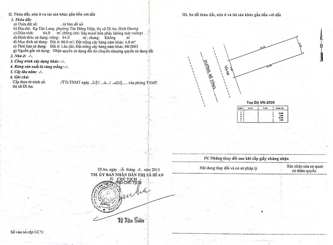 Địa chỉ tài sản: đường Nguyễn Thị Minh Khai, Phường Tân Đông Hiệp, Dĩ An, Phường Tân Đông Hiệp, Thị xã Dĩ An, Bình Dương