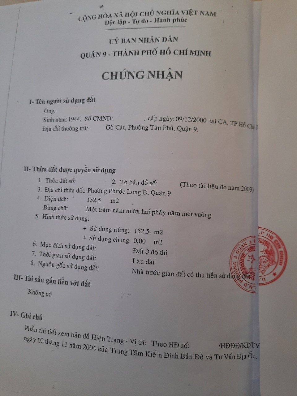 Địa chỉ tài sản: Đường D50, phường PLB,, Phường Phước Long B, Quận 9, Hồ Chí Minh