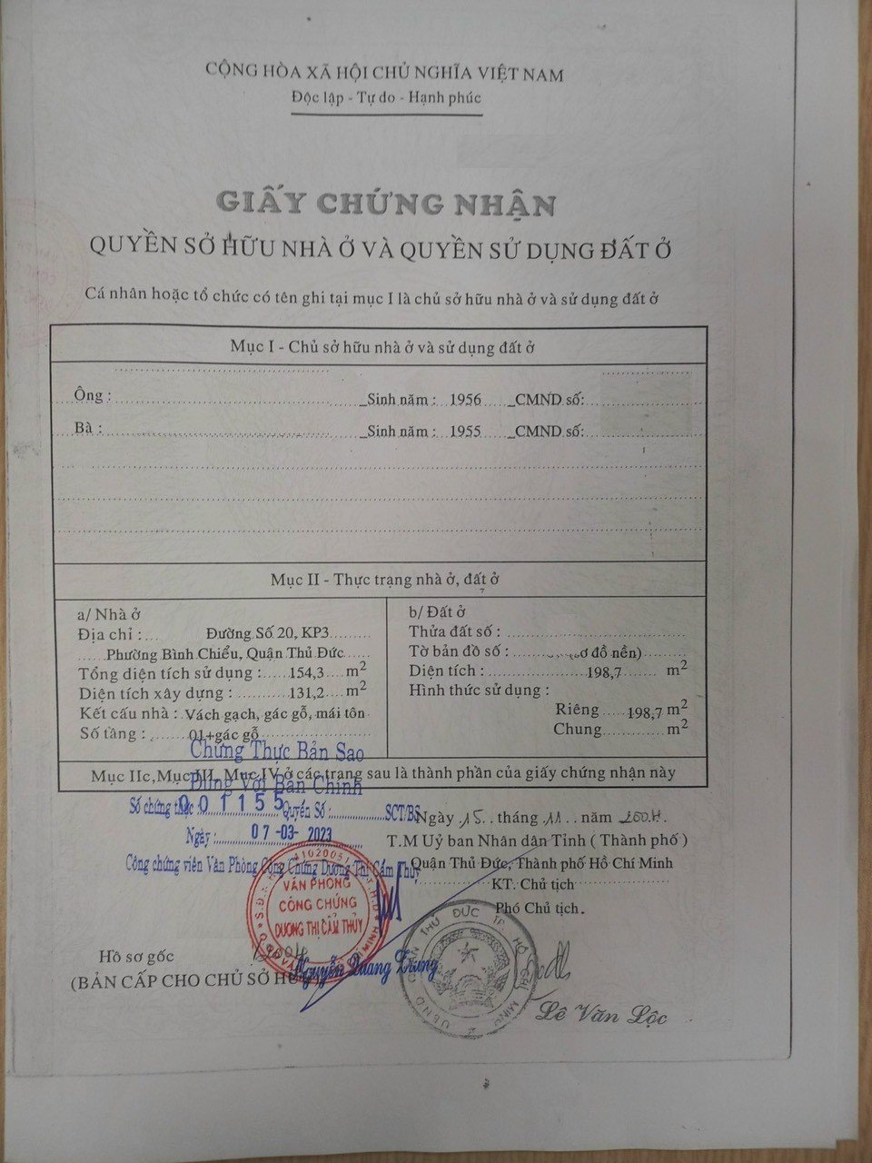 *Diện Tích đất công nhận: 198.7 m2 ngang 9.31 m x dài 21.34 m