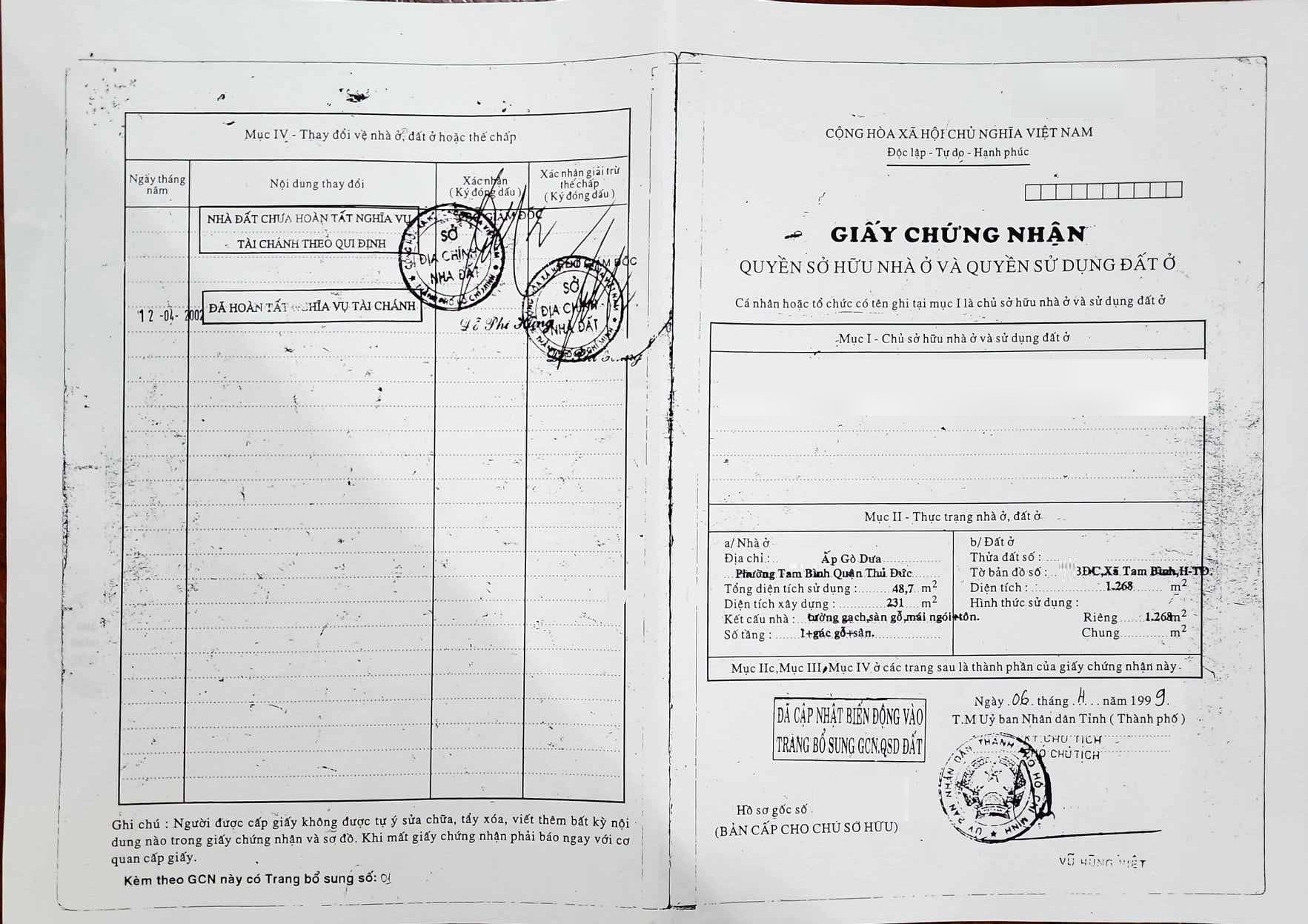 Địa chỉ tài sản: đường Gò Dưa , Phường Tam Bình, Phường Tam Bình, Quận Thủ Đức, Hồ Chí Minh