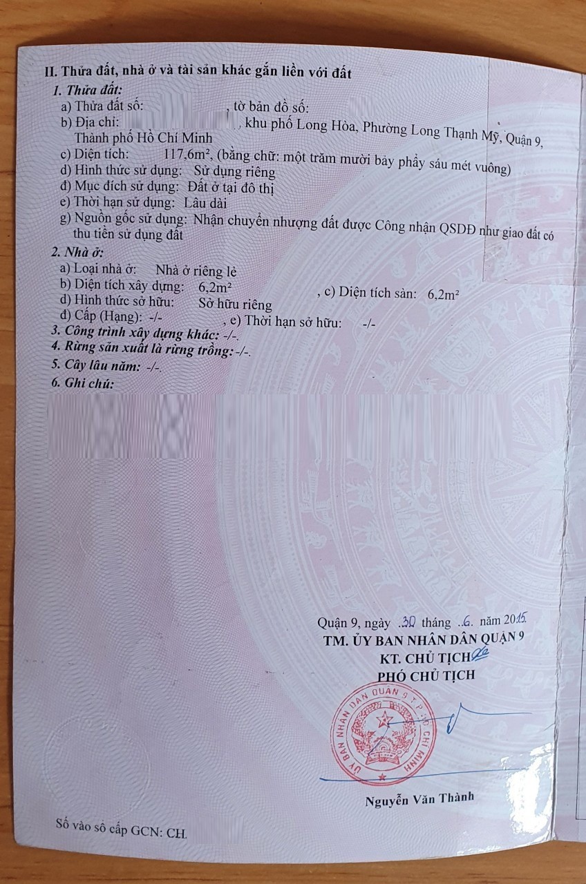 Địa chỉ tài sản: đường Nguyễn Xiển, TP Thủ Đức, Phường Long Thạnh Mỹ, Quận 9, Hồ Chí Minh