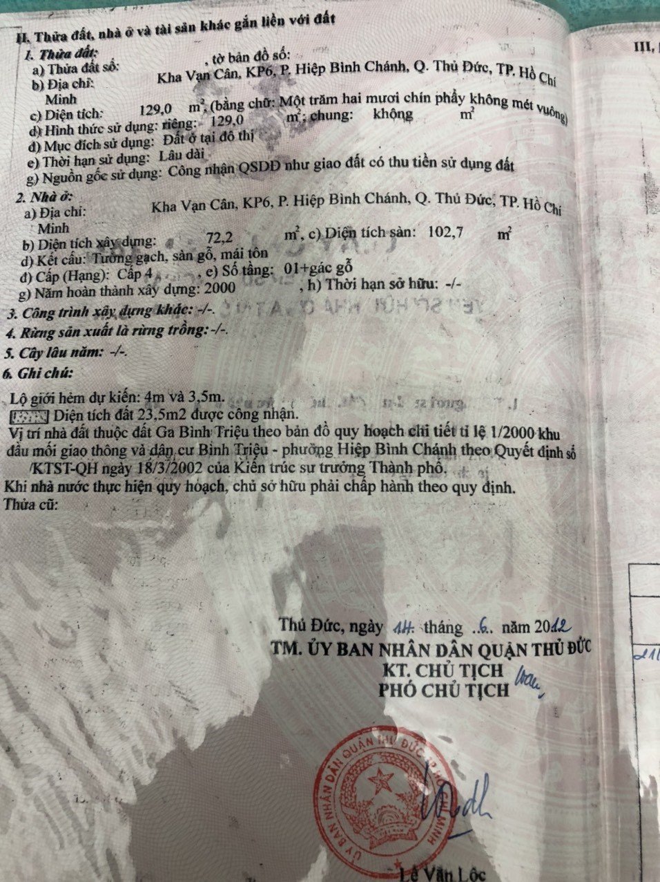 Địa chỉ tài sản: đường Kha Vạn Cân, phường Hiệp Bình Chánh, Phường Hiệp Bình Chánh, Quận Thủ Đức, Hồ Chí Minh