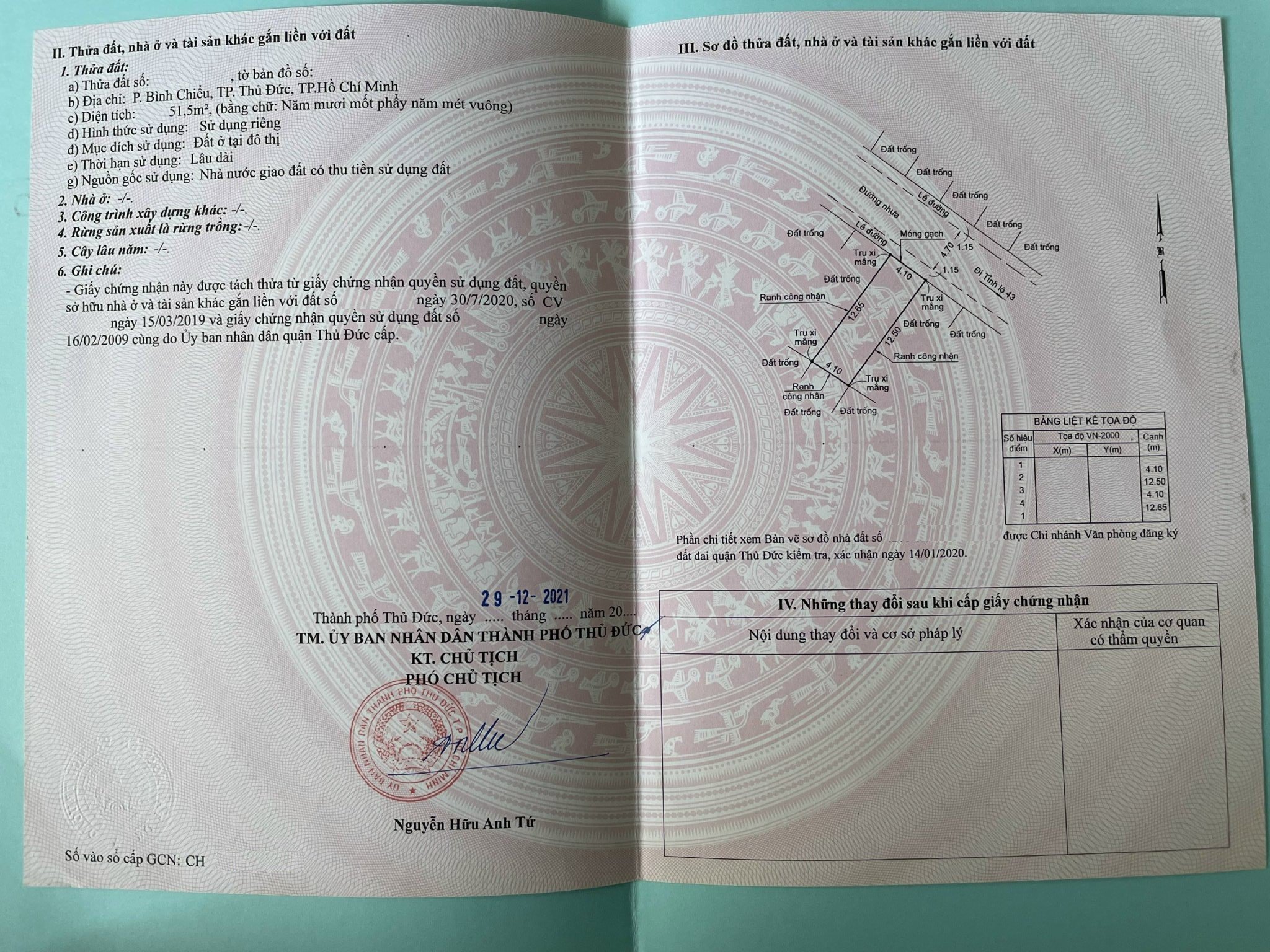 Diện tích; 4.1 x 12.6 = 51.5m2, thổ cư 100%;