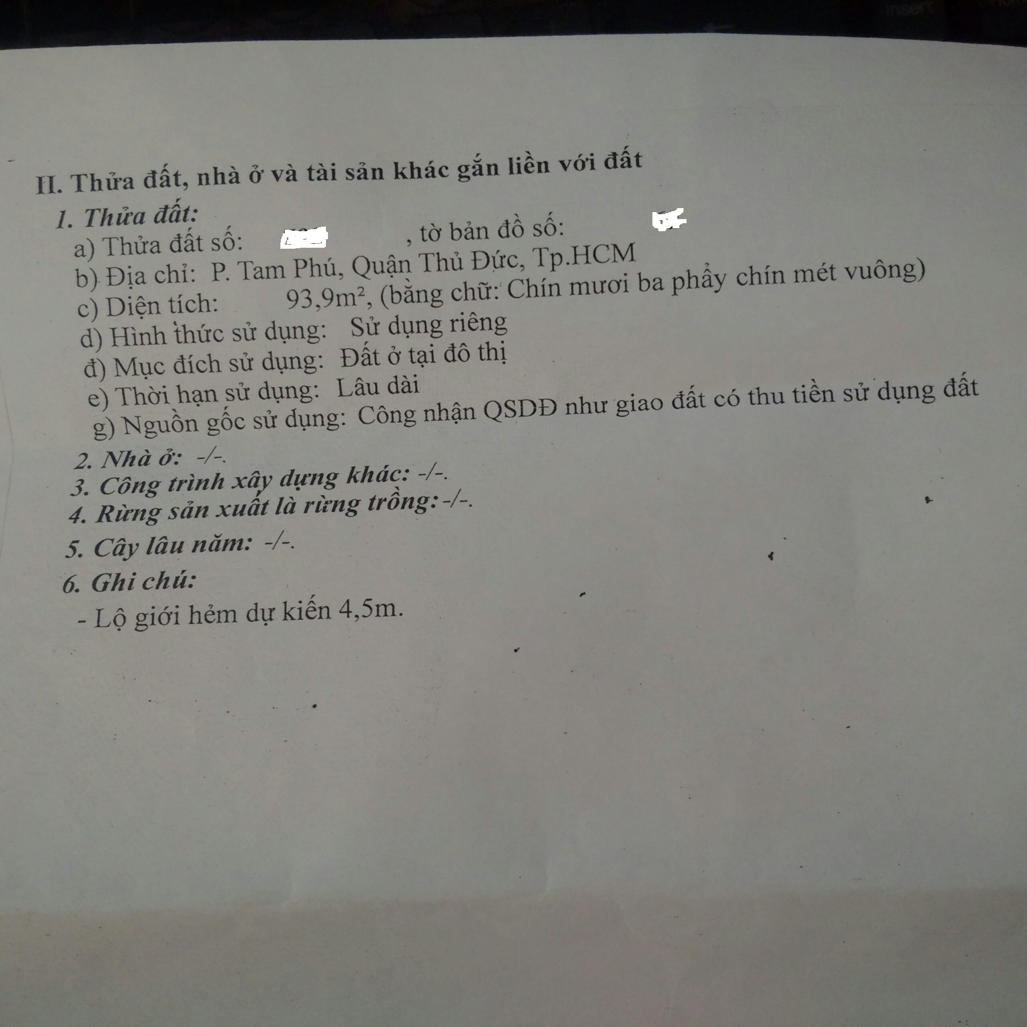 Địa chỉ tài sản: Đường Bình Phú, Tam Phú, Phường Tam Phú, Quận Thủ Đức, Hồ Chí Minh
