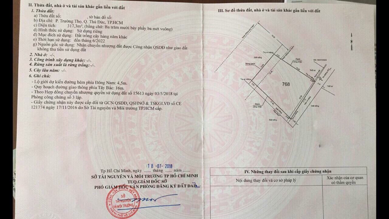 <04TT>: Hàng đầu tư – Đất cây xanh đường 4, Trường Thọ.
