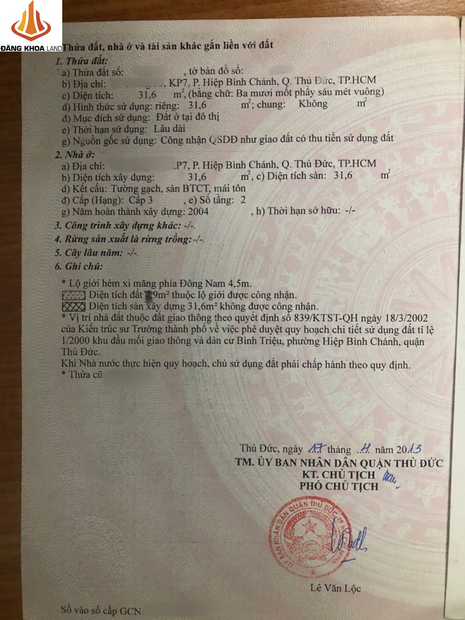 Địa chỉ tài sản: đường số 35, Chợ Hiệp Bình Chánh Nhà 1 TRỆT 1 lầu, 3phòng ngủ, 2wc, Phường Hiệp Bình Chánh, Quận Thủ Đức, Hồ Chí Minh