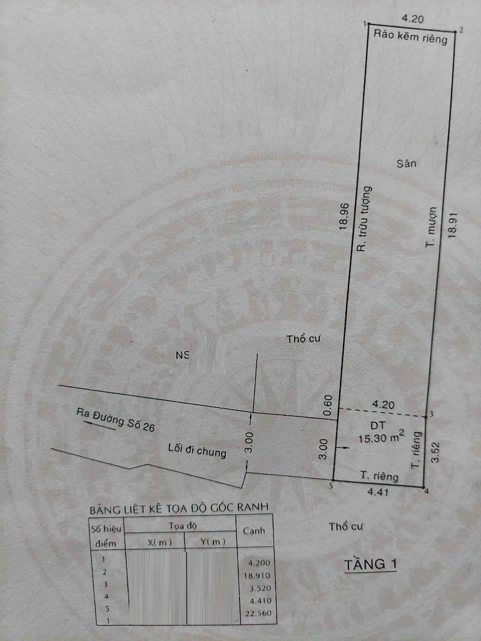 Diện tích đất công nhận: 94.9m² ngang 4.4m