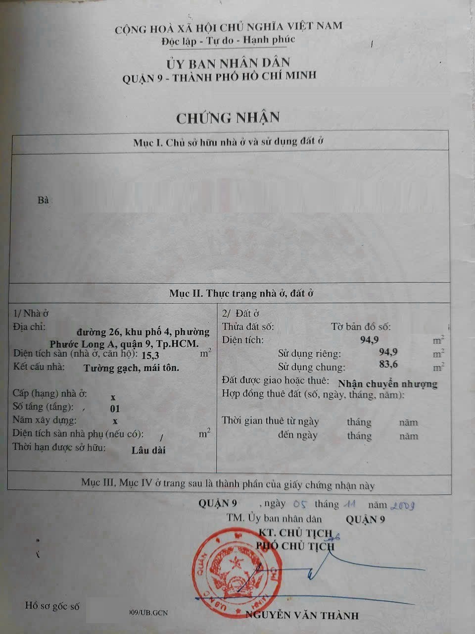 Địa chỉ tài sản: đường 26 phường Phước Long A,TP Thủ Đức, Phường Phước Long A, Quận 9, Hồ Chí Minh