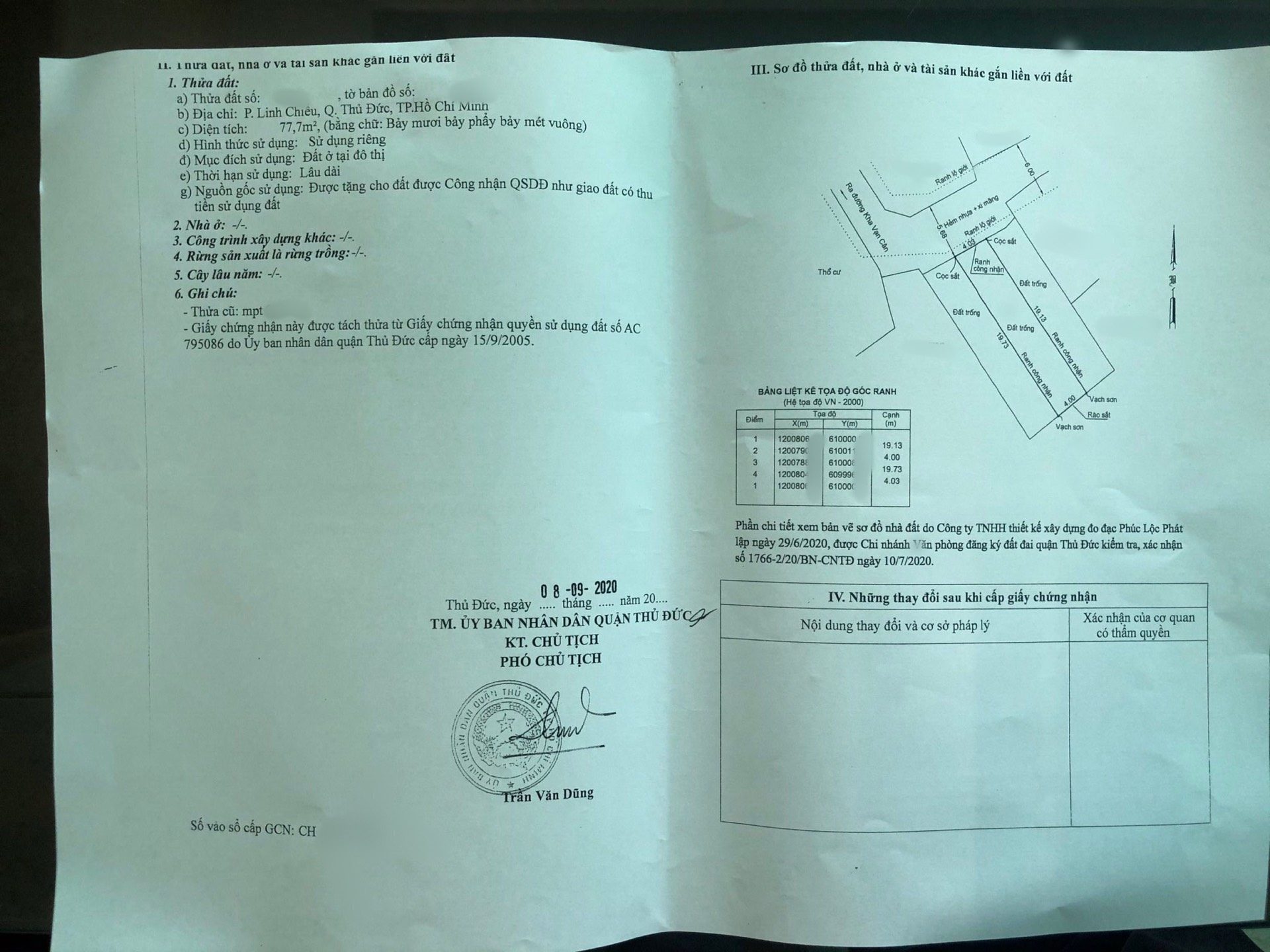 *Diện tích đất công nhận: 77.7m2. Ngang 4m x Dài 19.73m.