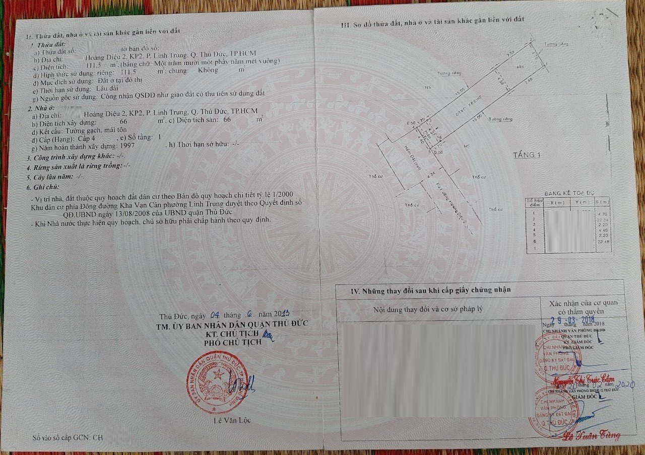 *Diện tích đất công nhận: 111.5m2. Ngang 4.4m x Dài 22.48m