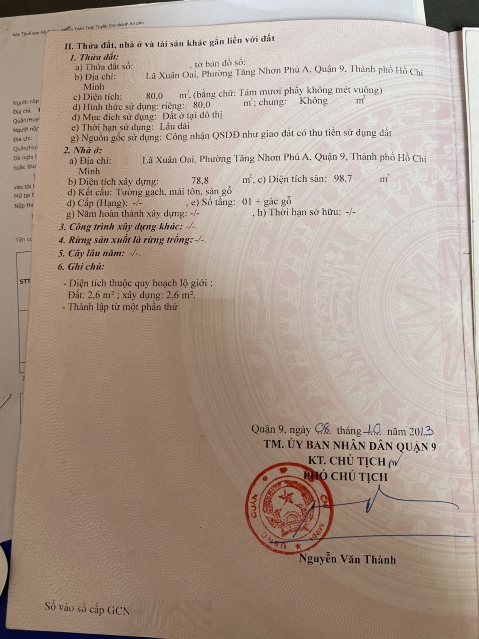 Địa chỉ tài sản: đường Lã Xuân Oai, Phường Tăng Nhơn Phú A, Phường Tăng Nhơn Phú A, Quận 9, Hồ Chí Minh