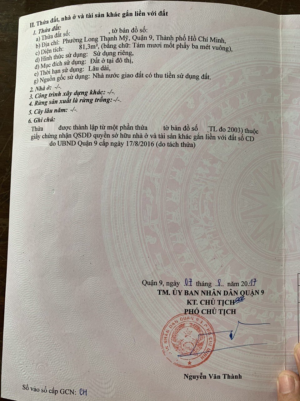 Địa chỉ tài sản: đường Nguyễn Xiễn, phường Long Thạnh Mỹ, TP Thủ Đức, Phường Long Thạnh Mỹ, Quận 9, Hồ Chí Minh