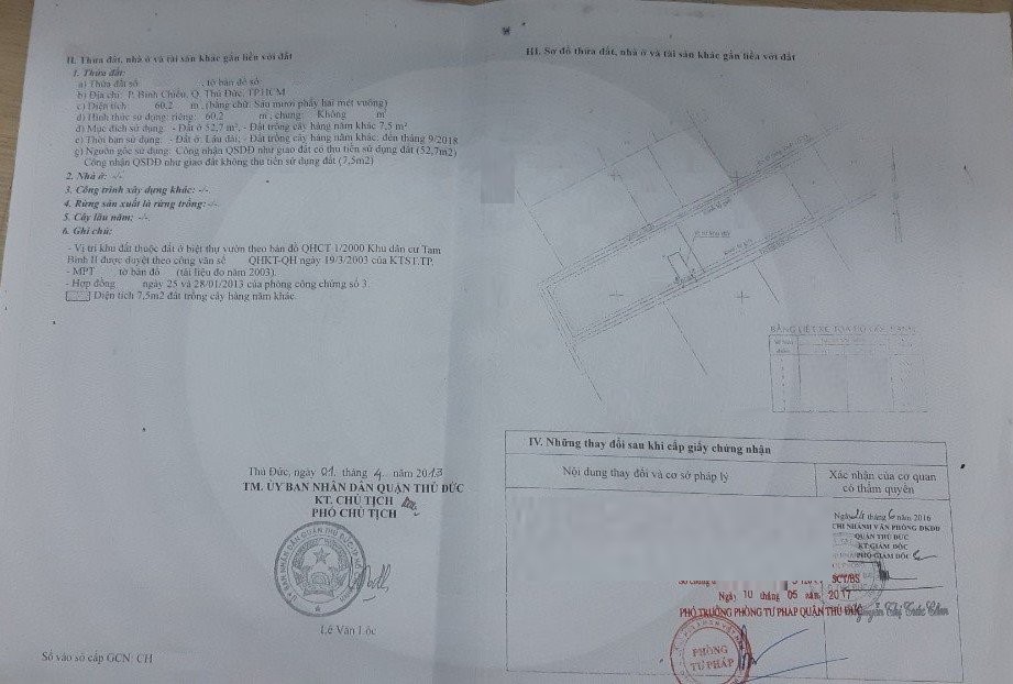 *Diện tích đất công nhận: 60.2m2. Ngang 5m x Dài 12m. ODT: 52.7m2, CLN: 7.5m2.