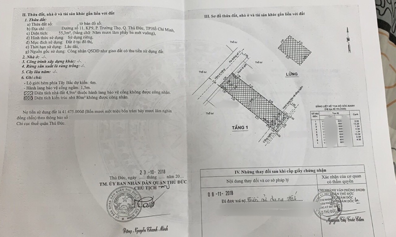 Địa chỉ tài sản: Đường 11,p. Trường Thọ, Phường Trường Thọ, Quận Thủ Đức, Hồ Chí Minh