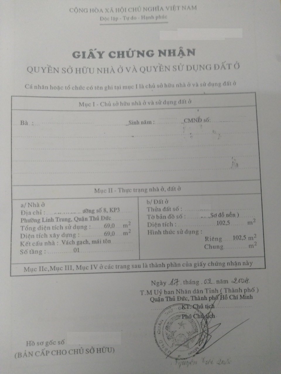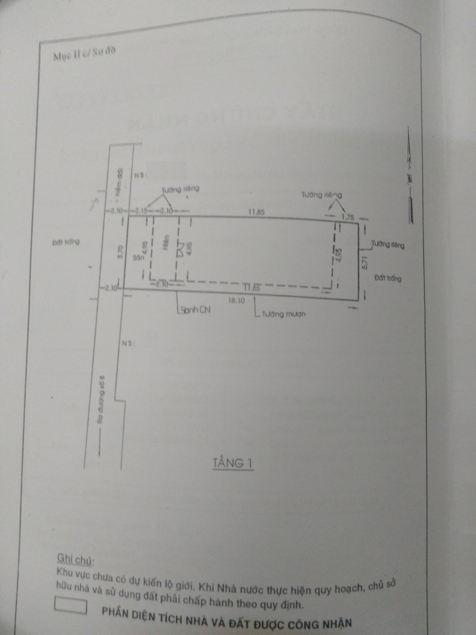*Diện Tích đất công nhận: 102.5m (ngang 5.7m x dài 18m)
