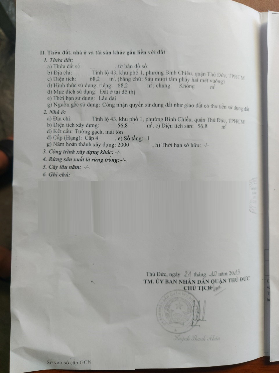 Địa chỉ tài sản: đường Tỉnh lộ 43, p. Bình Chiểu, Phường Bình Chiểu, Quận Thủ Đức, Hồ Chí Minh