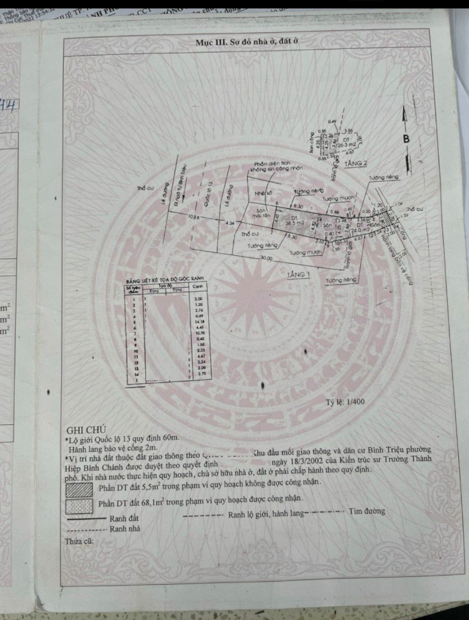 *Diện Tích đất công nhận: 86.8 m2 ngang 4.4 m x dài x 17m, hậu 2.7m
