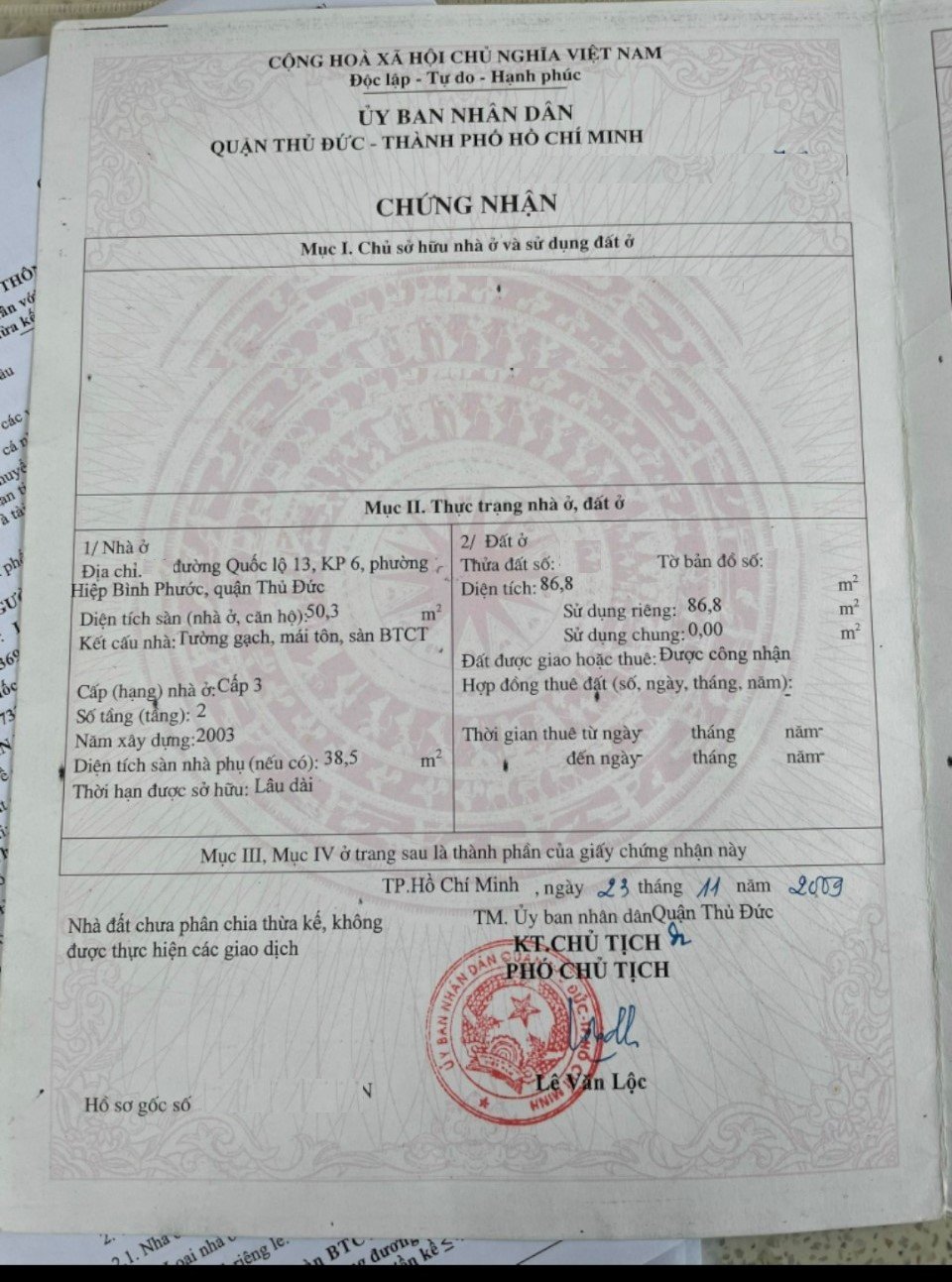 Địa chỉ tài sản: đường Quốc lộ 13, Phường Hiệp Bình Phước, Phường Hiệp Bình Phước, Quận Thủ Đức, Hồ Chí Minh