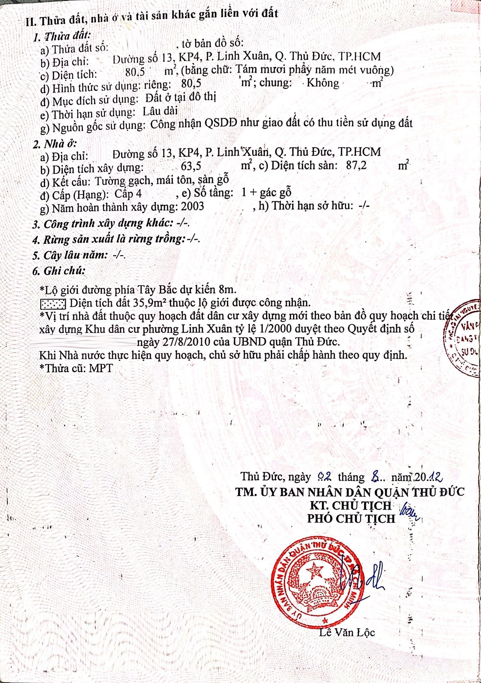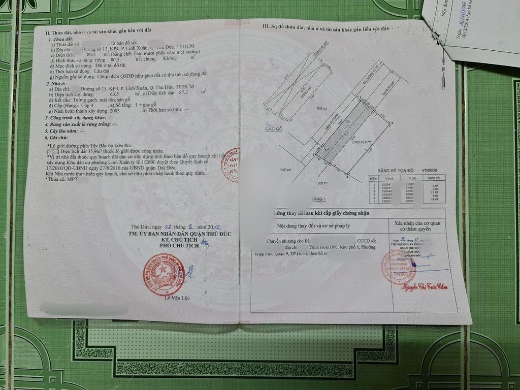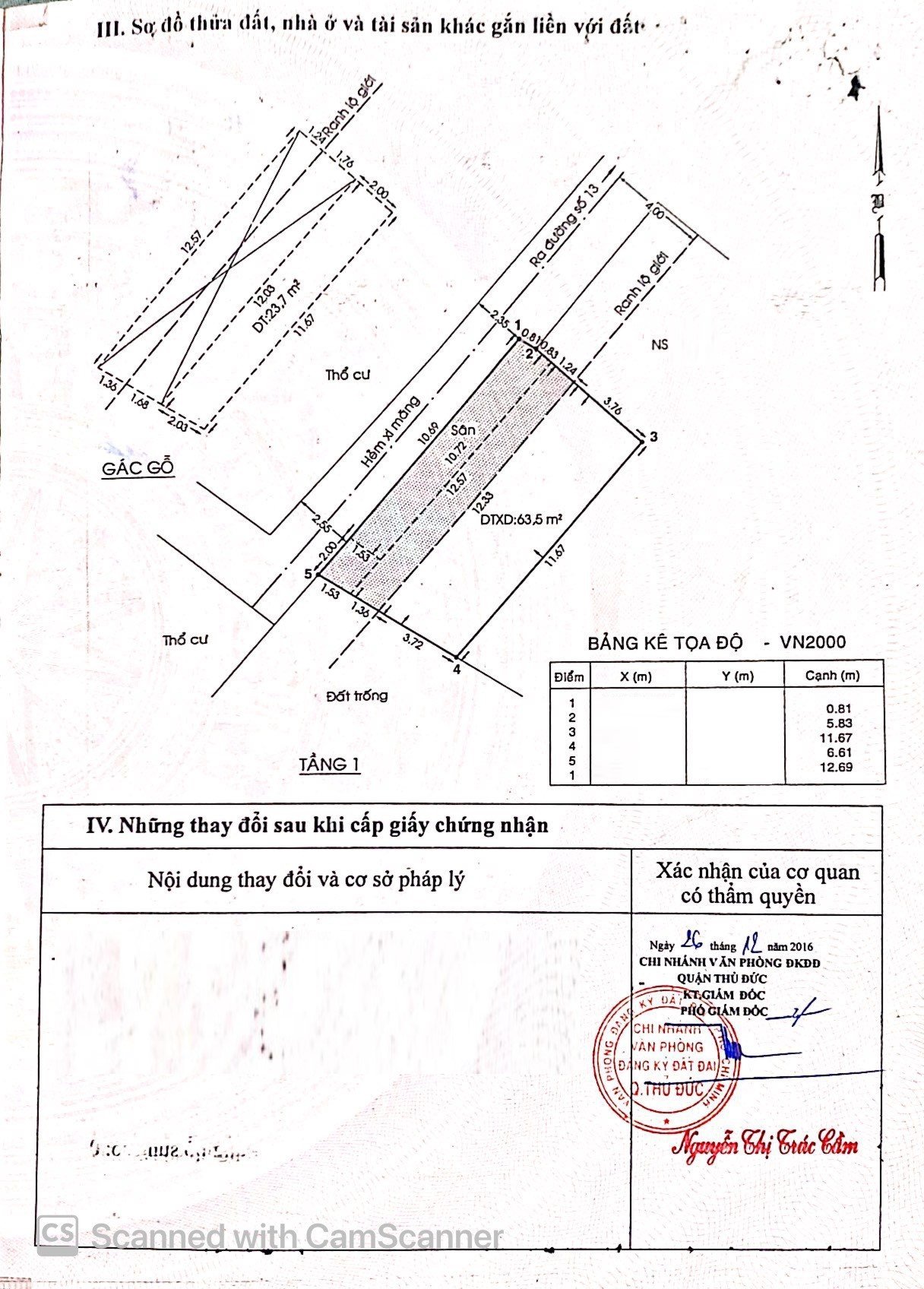 *Diện tích đất công nhận: 80.5m2. Ngang 12.69m x Dài 6.61m