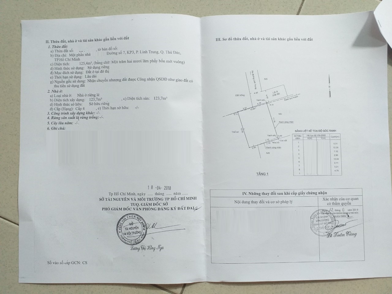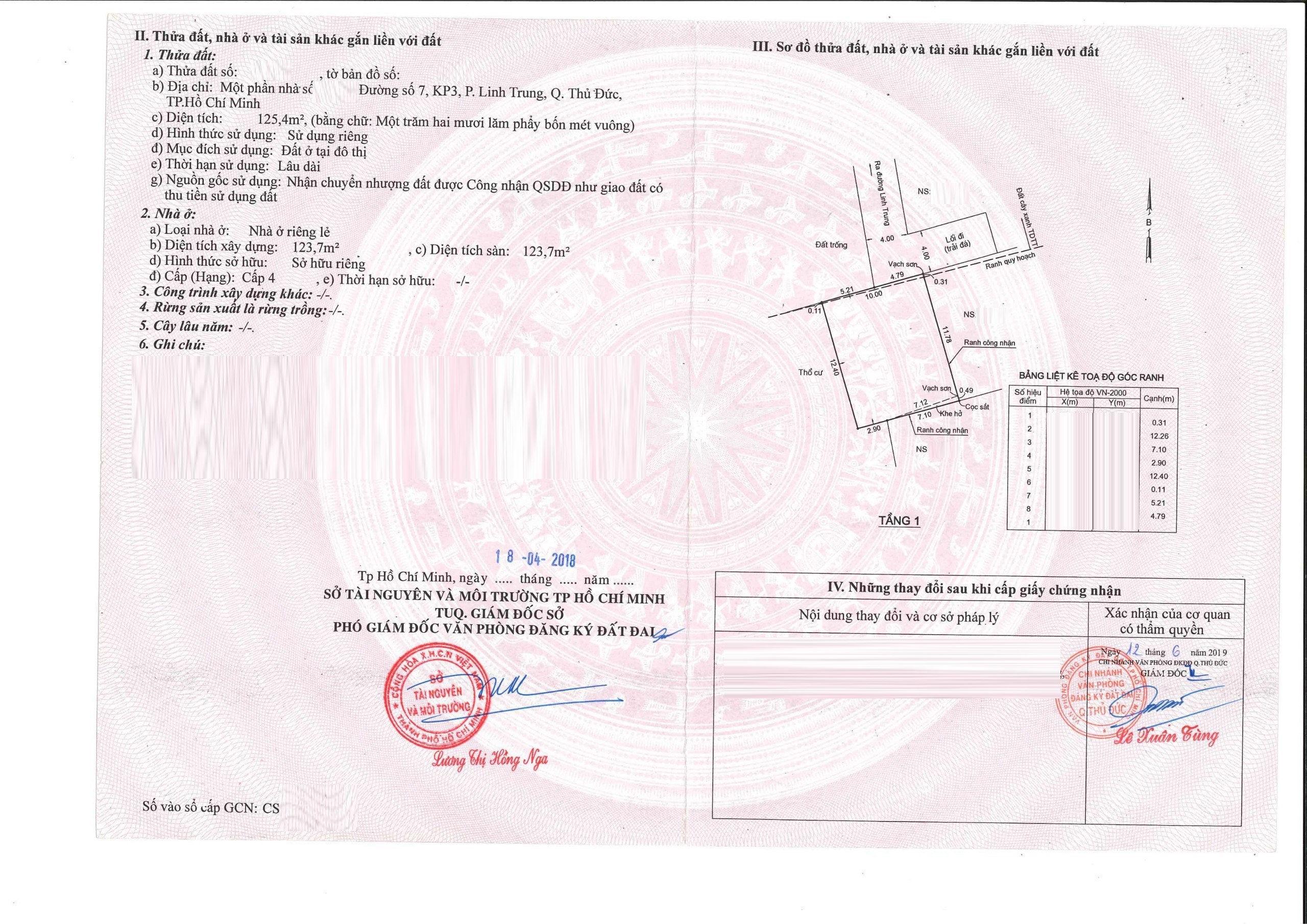 *Diện Tích đất công nhận: 125.4m² (ngang 10m x 12.5m)
