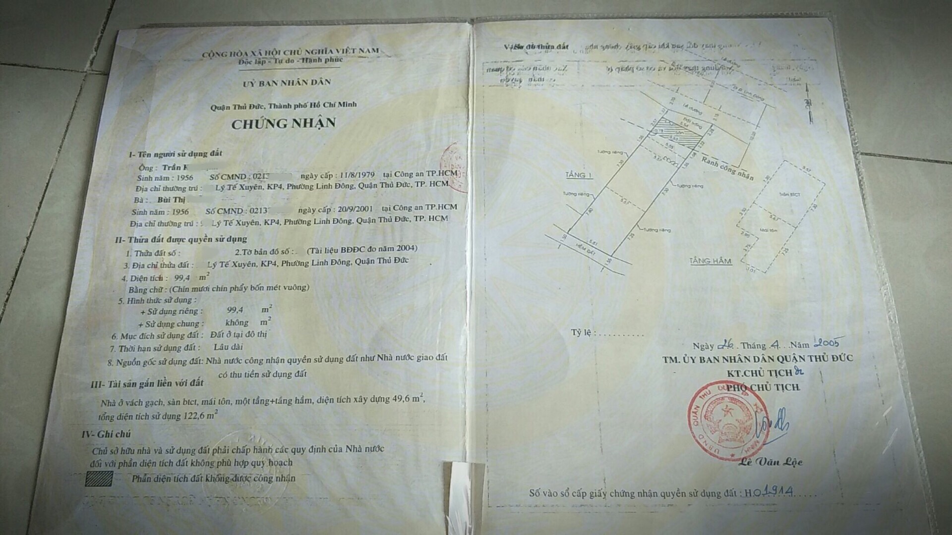 Địa chỉ tài sản: mặt tiền đường Lý Tế Xuyên , Phường Linh Đông, Quận Thủ Đức, Hồ Chí Minh