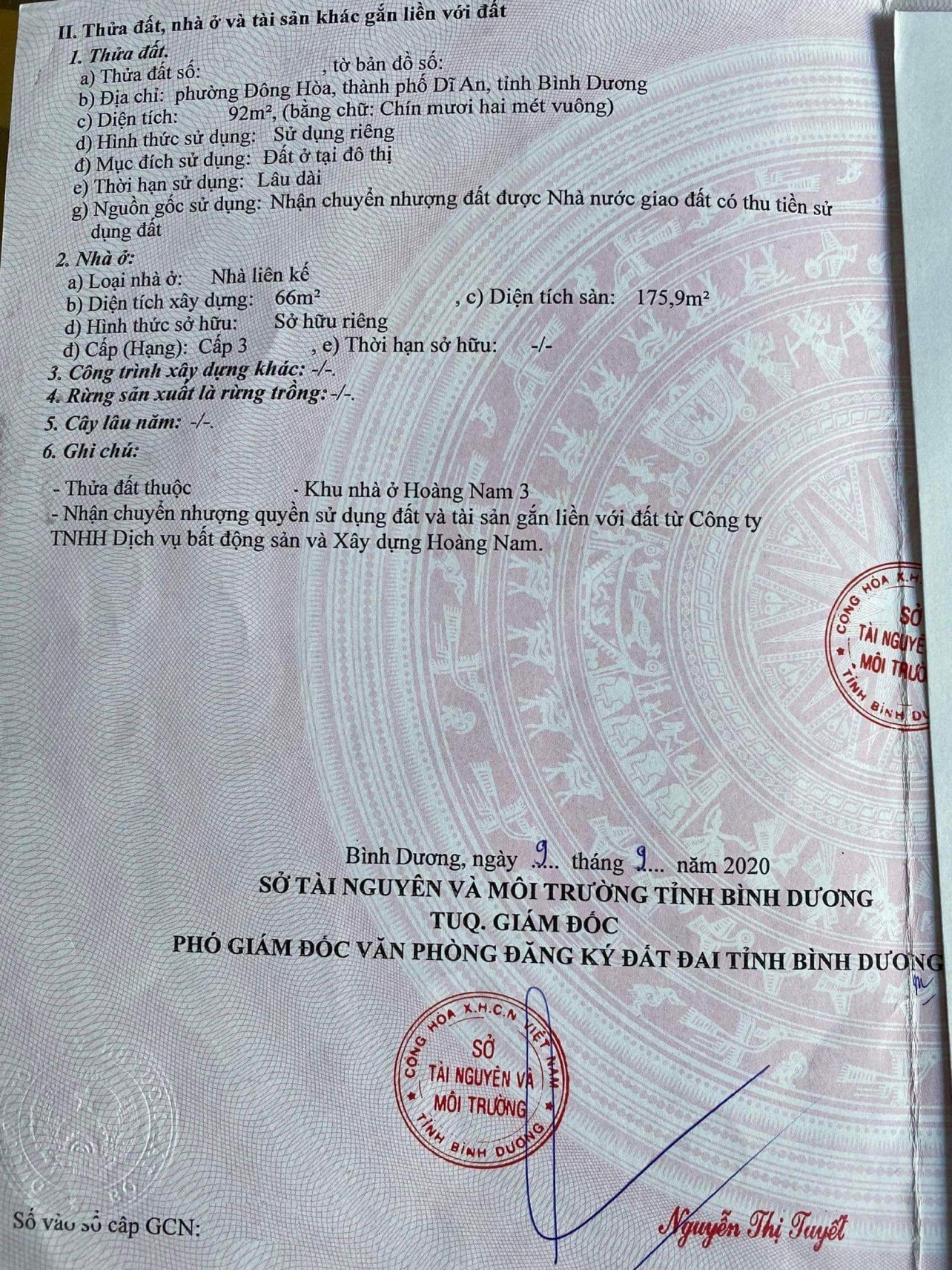 Địa chỉ tài sản: Dân Cư Hoàng Nam 3- Tphố Dĩ An - T Bình Dương, Phường Dĩ An, Thị xã Dĩ An, Bình Dương