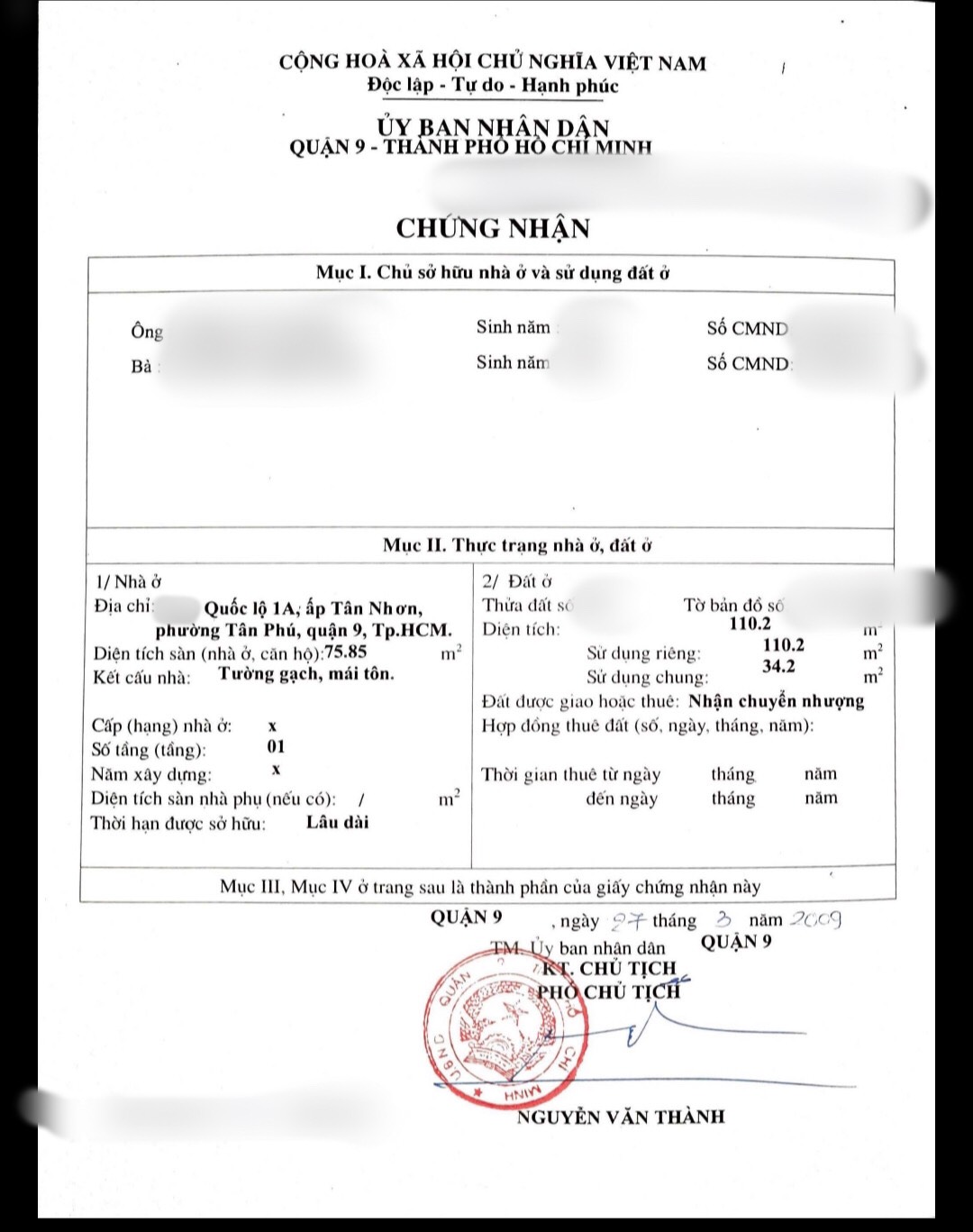 Địa chỉ tài sản: Đường Quốc lộ 1A, Phường Tân Phú, Thành phố Thủ Đức., Phường Tân Phú, Quận 9, Hồ Chí Minh