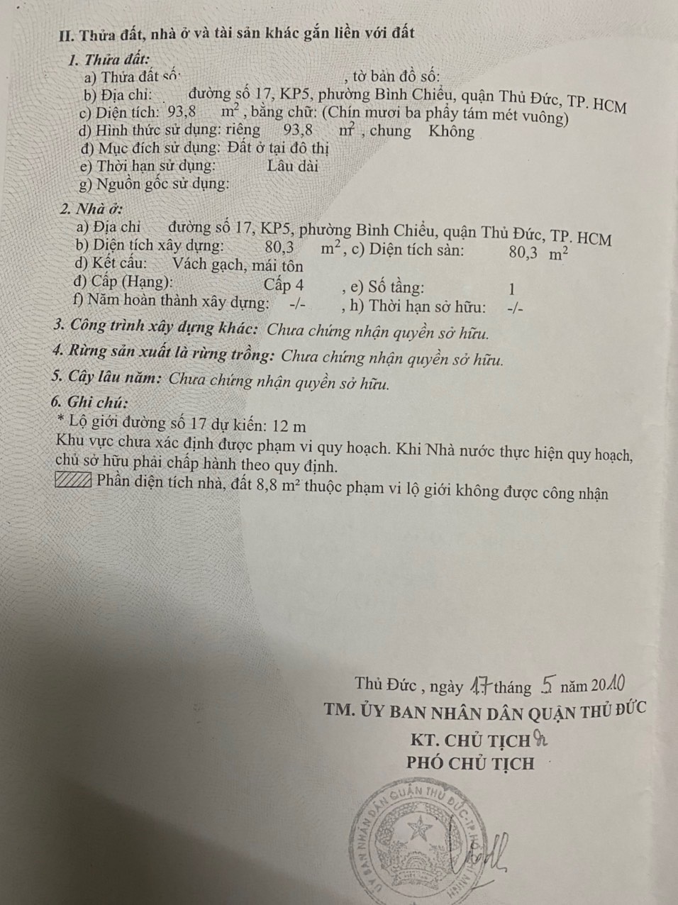 Địa chỉ tài sản: đường 17, Phường Bình Chiểu, Phường Bình Chiểu, Quận Thủ Đức, Hồ Chí Minh