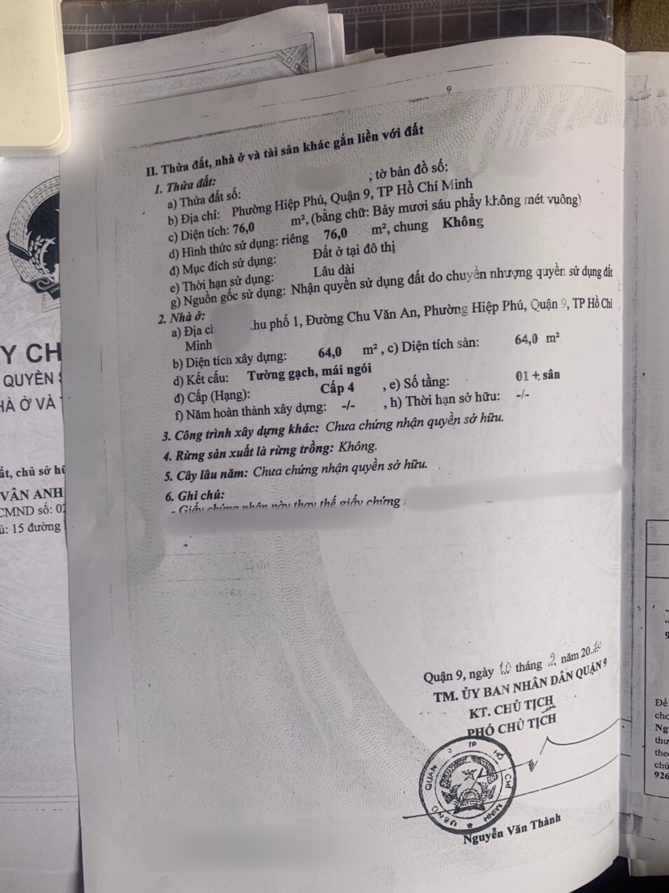 Địa chỉ tài sản: Đường Chu Văn An, Phường Hiệp Phú, tp Thủ Đức, Phường Hiệp Phú, Quận 9, Hồ Chí Minh